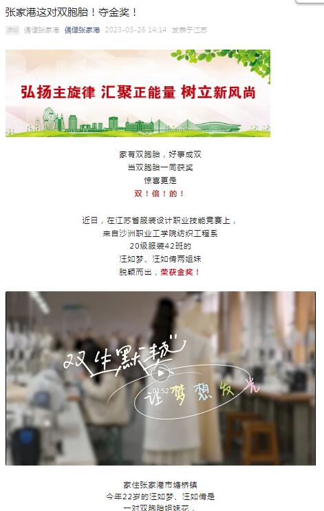 91福利影院 - 【偶俚张家港】张家港这对双胞胎!夺金奖!